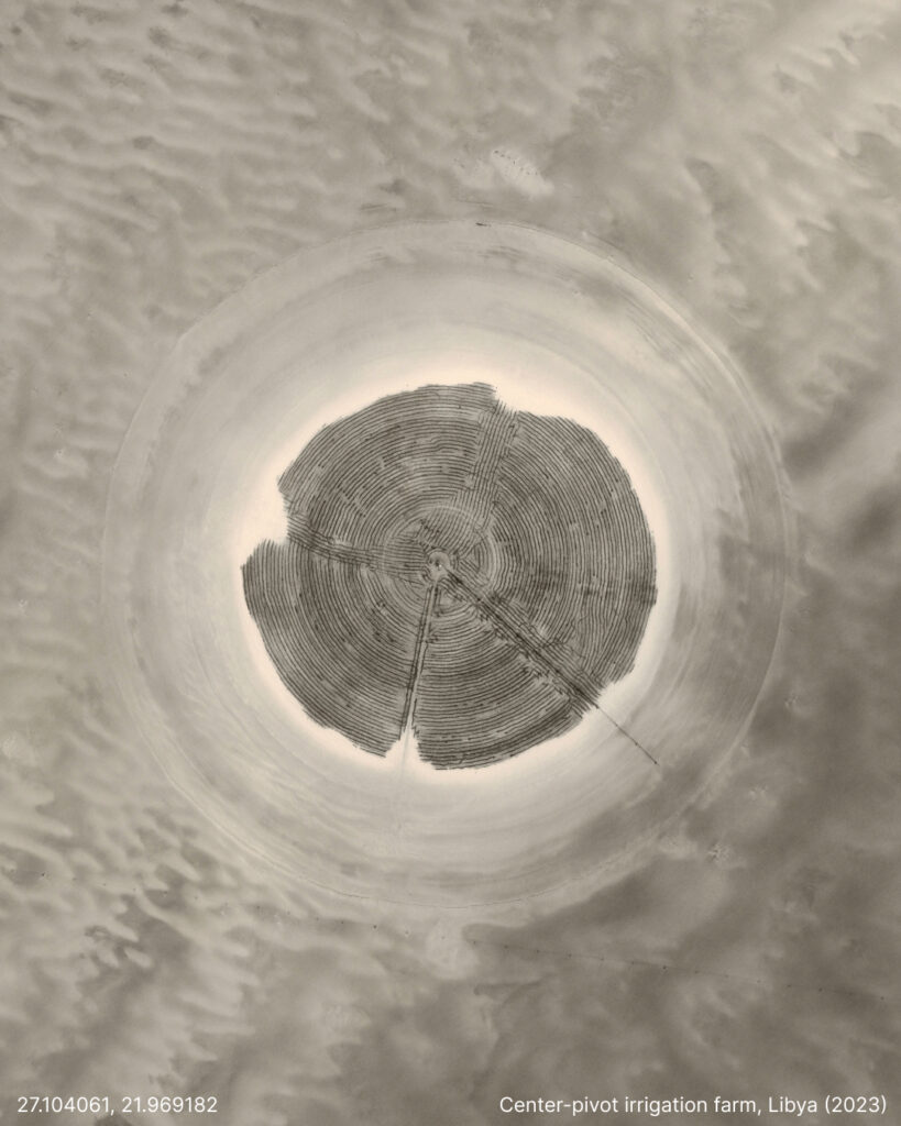The Great Man-Made River in Libya is a project inaugurated by Gaddafi in 1991, aimed at pumping non-renewable aquifers from the Nubian Sandstone Basin to populated areas in the north. The project’s origin lies in the discovery of the world’s largest groundwater reservoir during an oil exploration drilling in 1953.